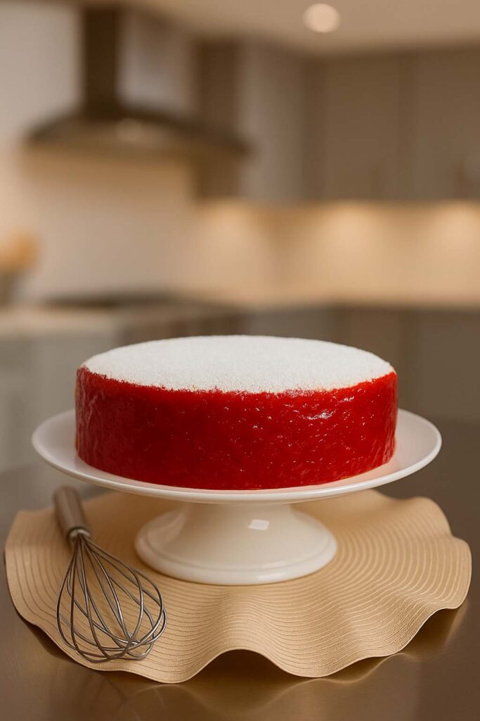 Delicioso bolo feito com base de bem casado, recheado com pedaços de morangos e chantilly. finalizado com geleia de morango e açúcar de confeiteiro!