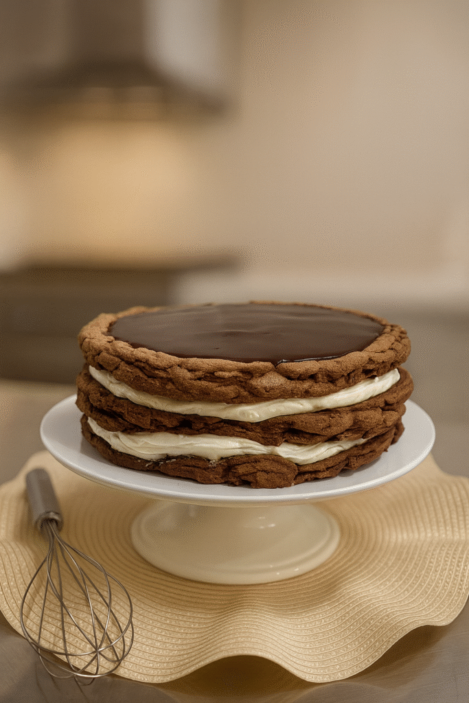Base de biscoito Maria intercalado com brigadeiro gourmet, chantilly e coberto com ganache